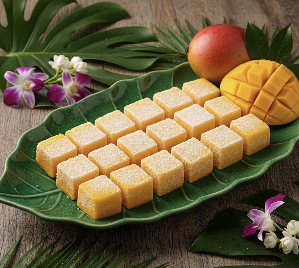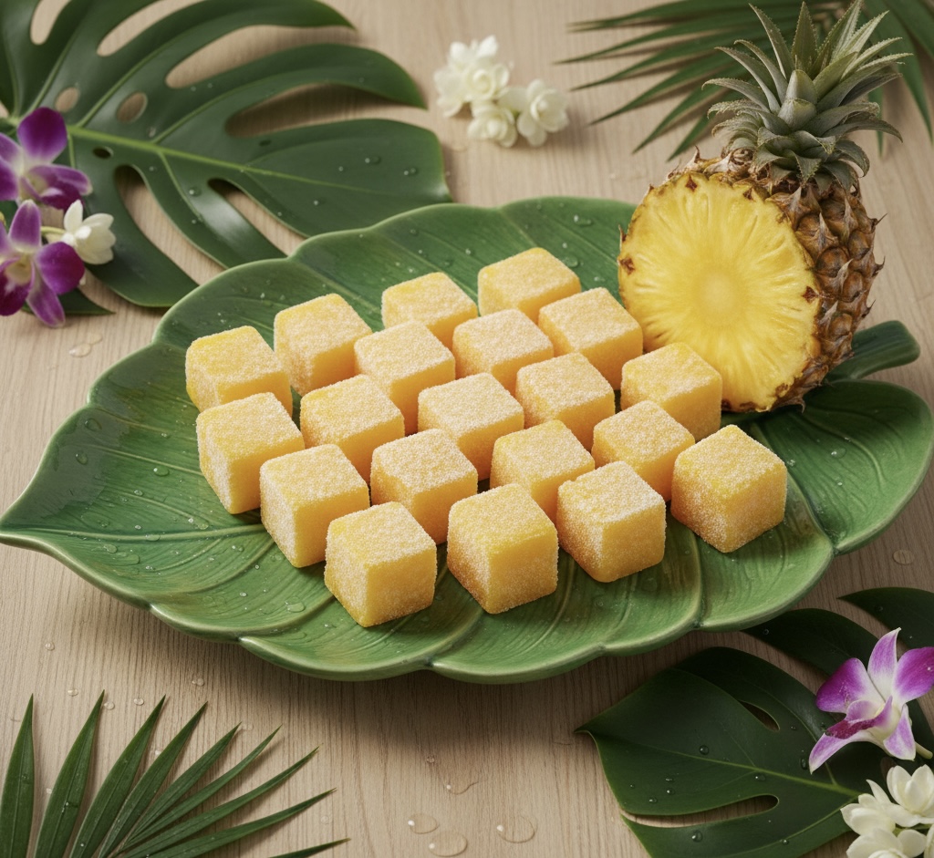 A versatile selection of frozen diced tropical fruits mango, longan and pineapple Each cube is carefully cut and frozen to lock in freshness, flavor, and nutrition.